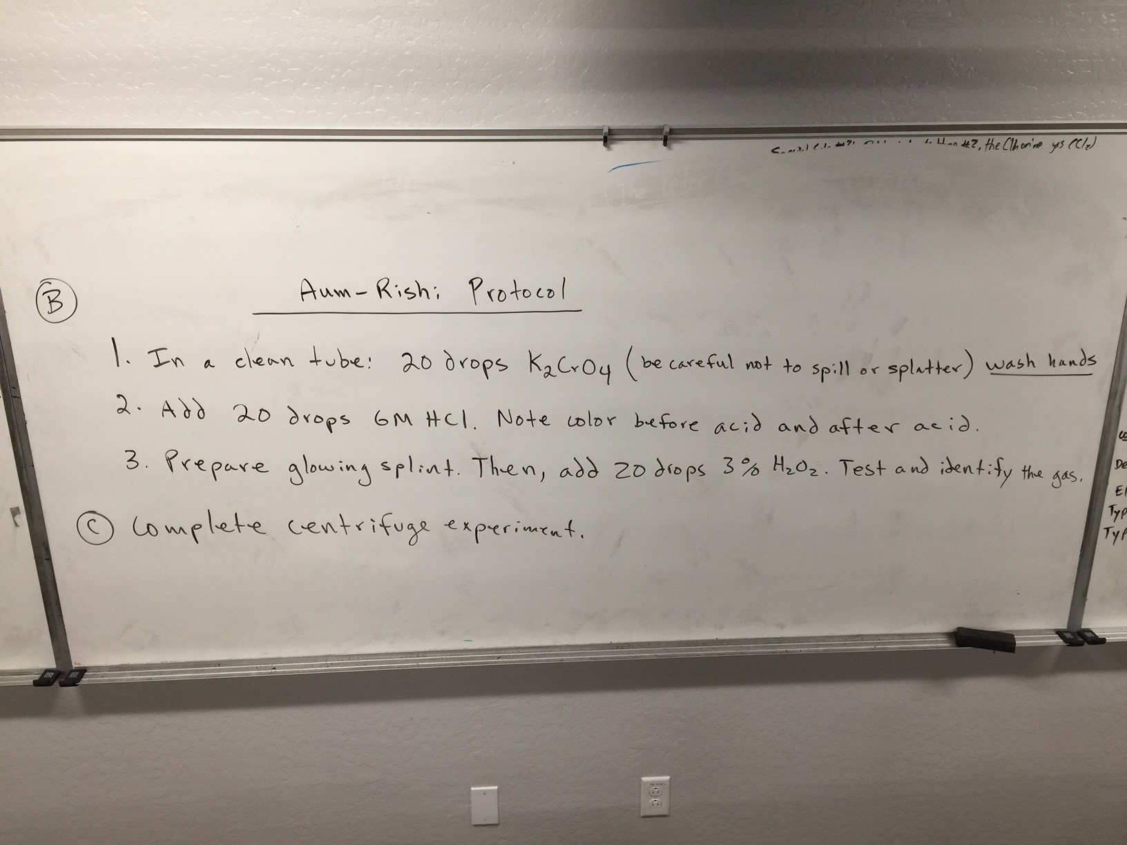 Wednesday, 10-18-17: White Board; Thursday, 10-19-17: Lab: Separation of AgCl from PbCl2 solid.