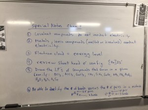 Thursday, 11-2-17: White Board Lewis Formulas. Weekend 11-4/5-17; Got to link “Mole and Chemical Formulas. Watch “The Mole” and “More on the Mole” for monday.